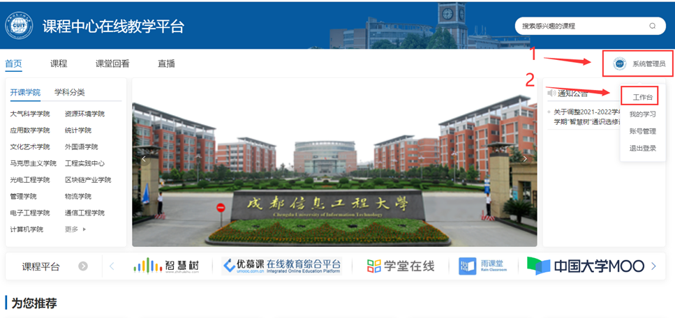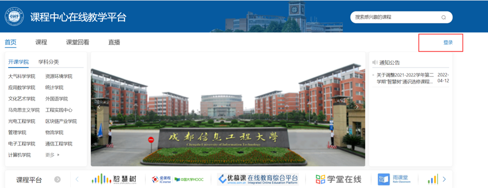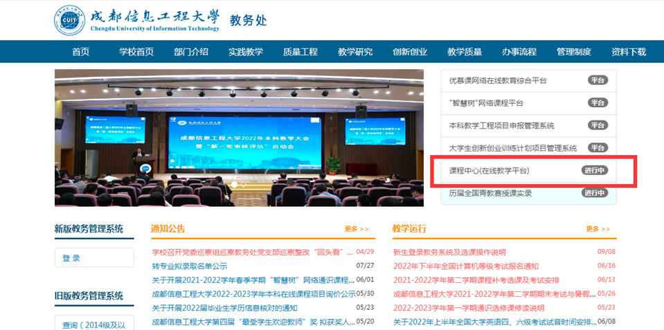 1、访问学校教务处网站点击右边“课程中心”或直接访问课程中心网址:https://kczx.cuit.edu.cn