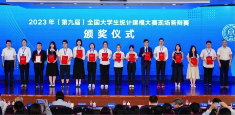 8月21-23日,2023年(第九届)全国大学生统计建模大赛全国总决赛在浙江财经大学圆满落幕。本次大赛由中国统计教育学会、教育部高等学校统计学类专业教学指导委员会和全国应用统计专业学位研究生教育指导委员会联合主办,浙江财经大学承办,中国政府统计研究中心协办。我校师生在大赛中喜获佳绩,斩获全国一等奖2项、三等奖5项,除此以外我校还获得省级一等奖9项、二等奖15项、三等奖14项的好成绩。获全国赛奖项队伍信息如下: